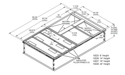 Hybrid roof curbs downflow 24 height used with z series packaged electric cooling w optional electric heat.